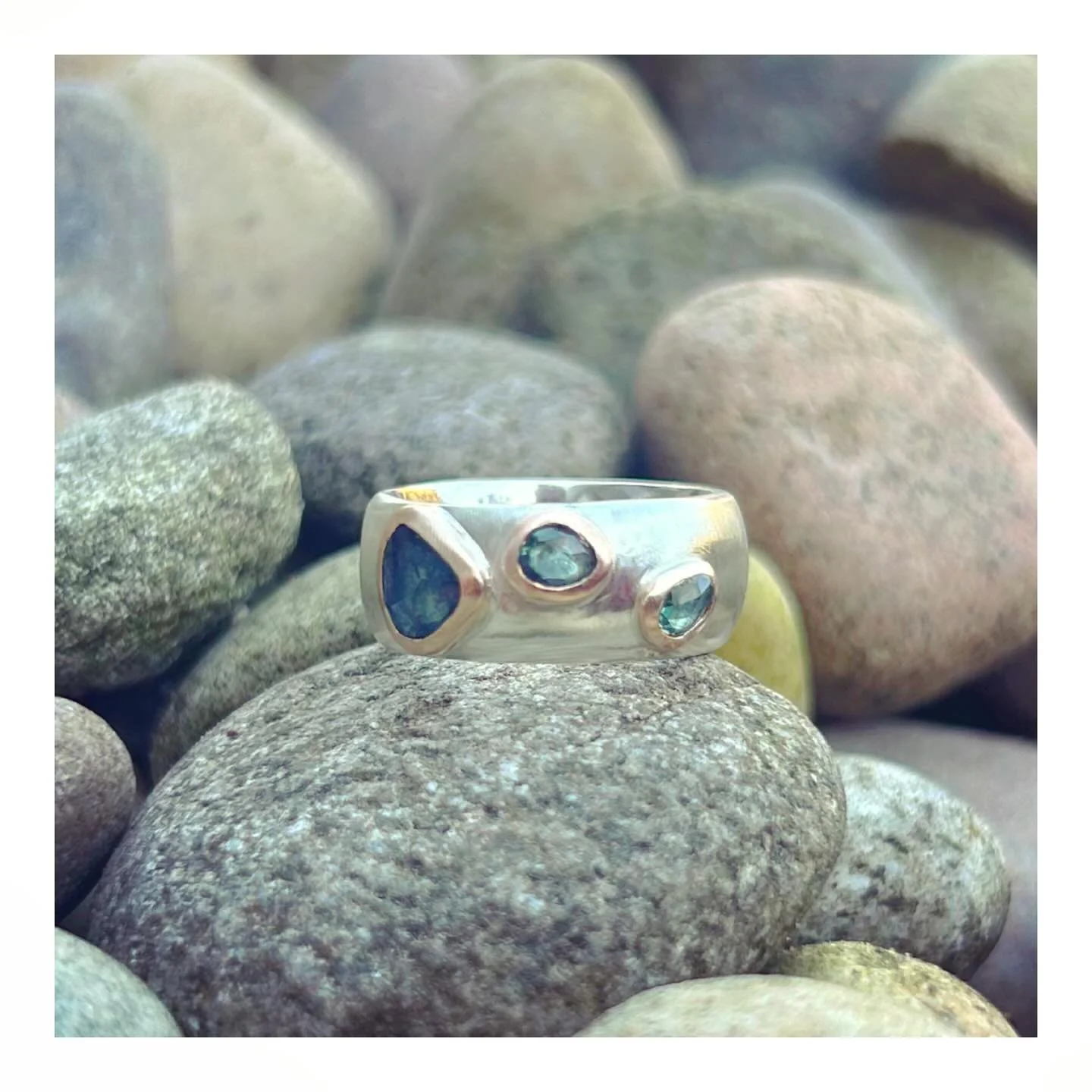 Hannah works from a home-workshop in beautiful Blanefield, rural Stirlingshire. She is inspired by the rugged landscape, mountains and forests surrounding her home, producing organic tactile jewellery in silver, gold and precious gemstones. When she’s not hammering, she’s often found exploring on her bike, seeking out a cold loch to jump into, or working as a doctor in A&E.