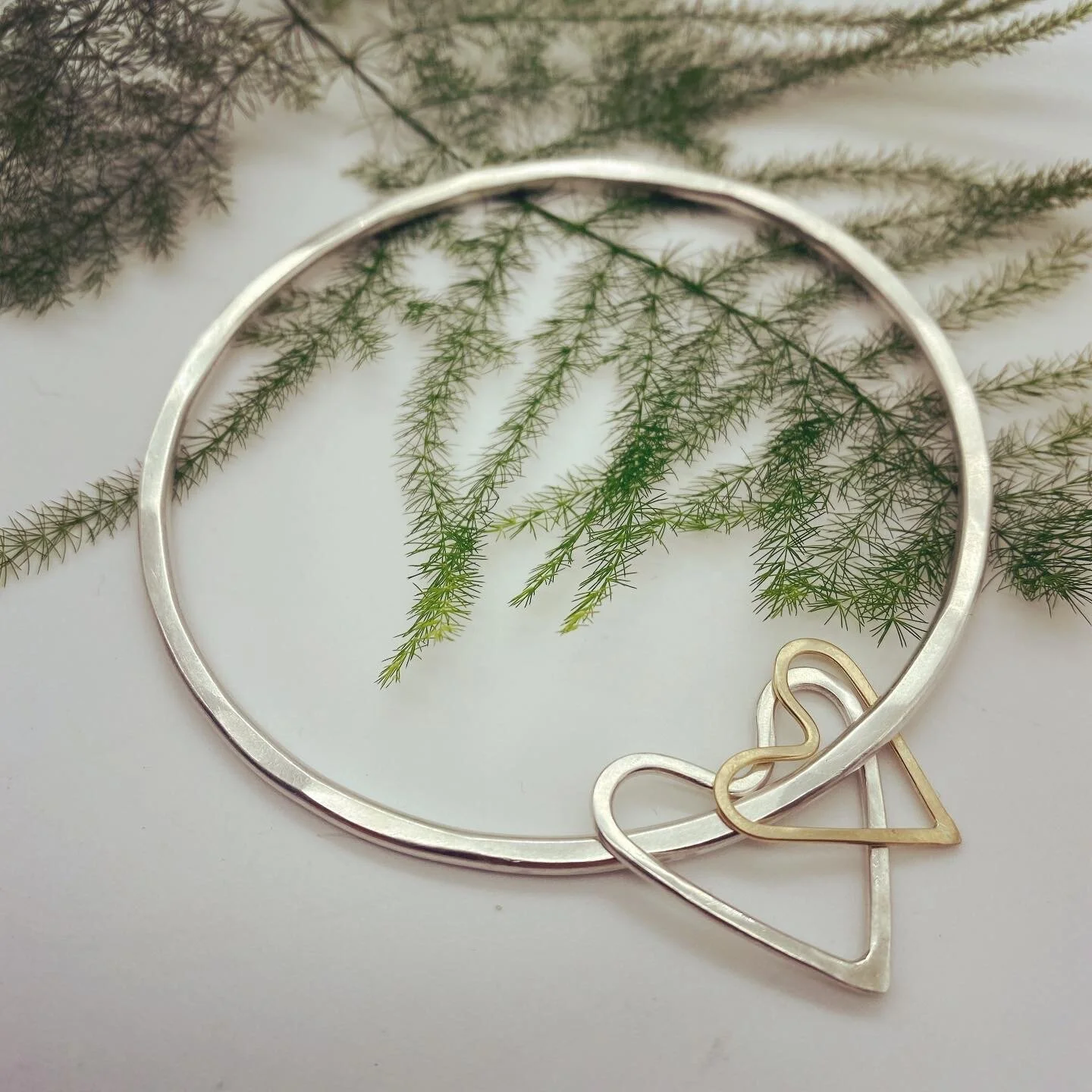 18ct gold and silver heart charm bangle